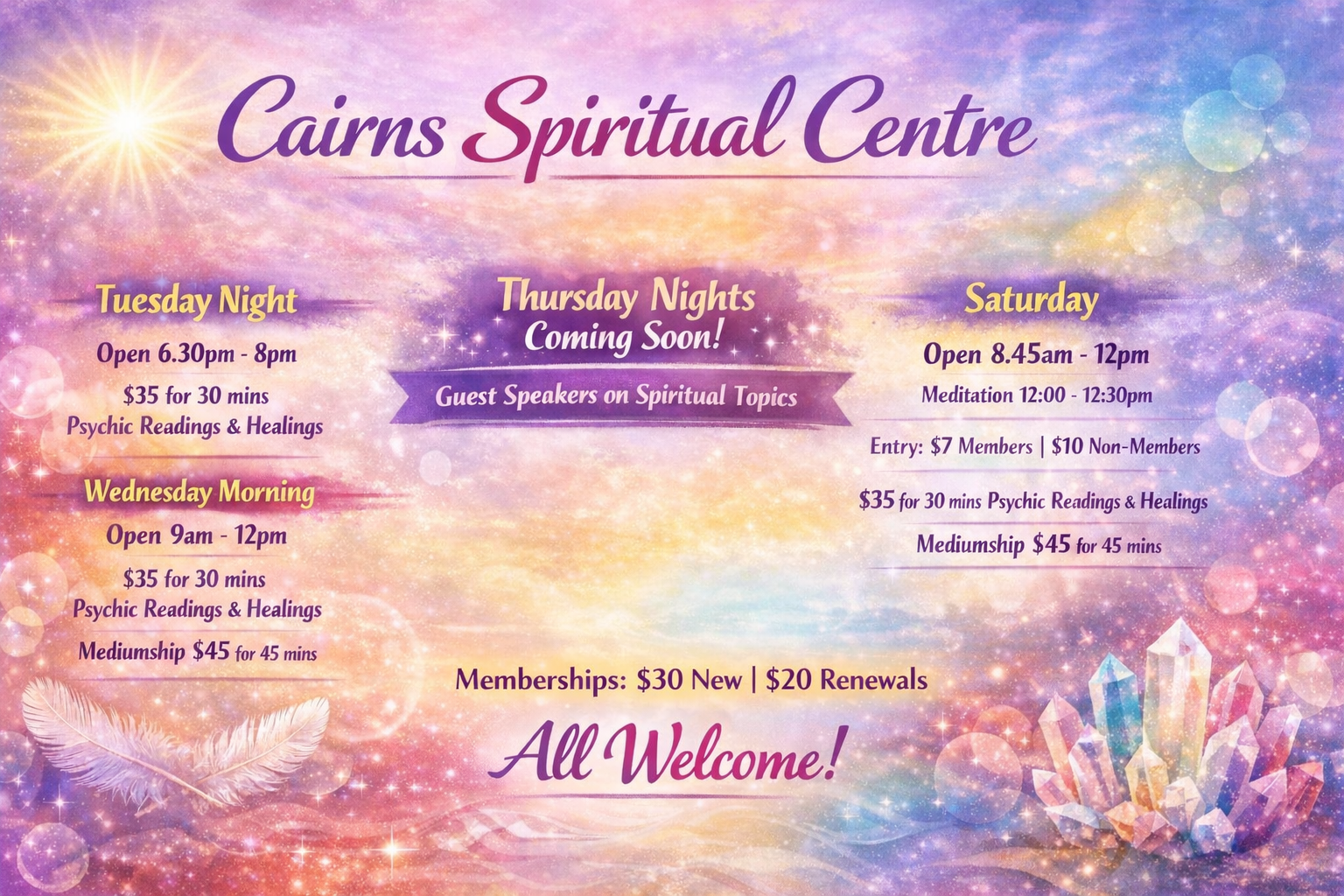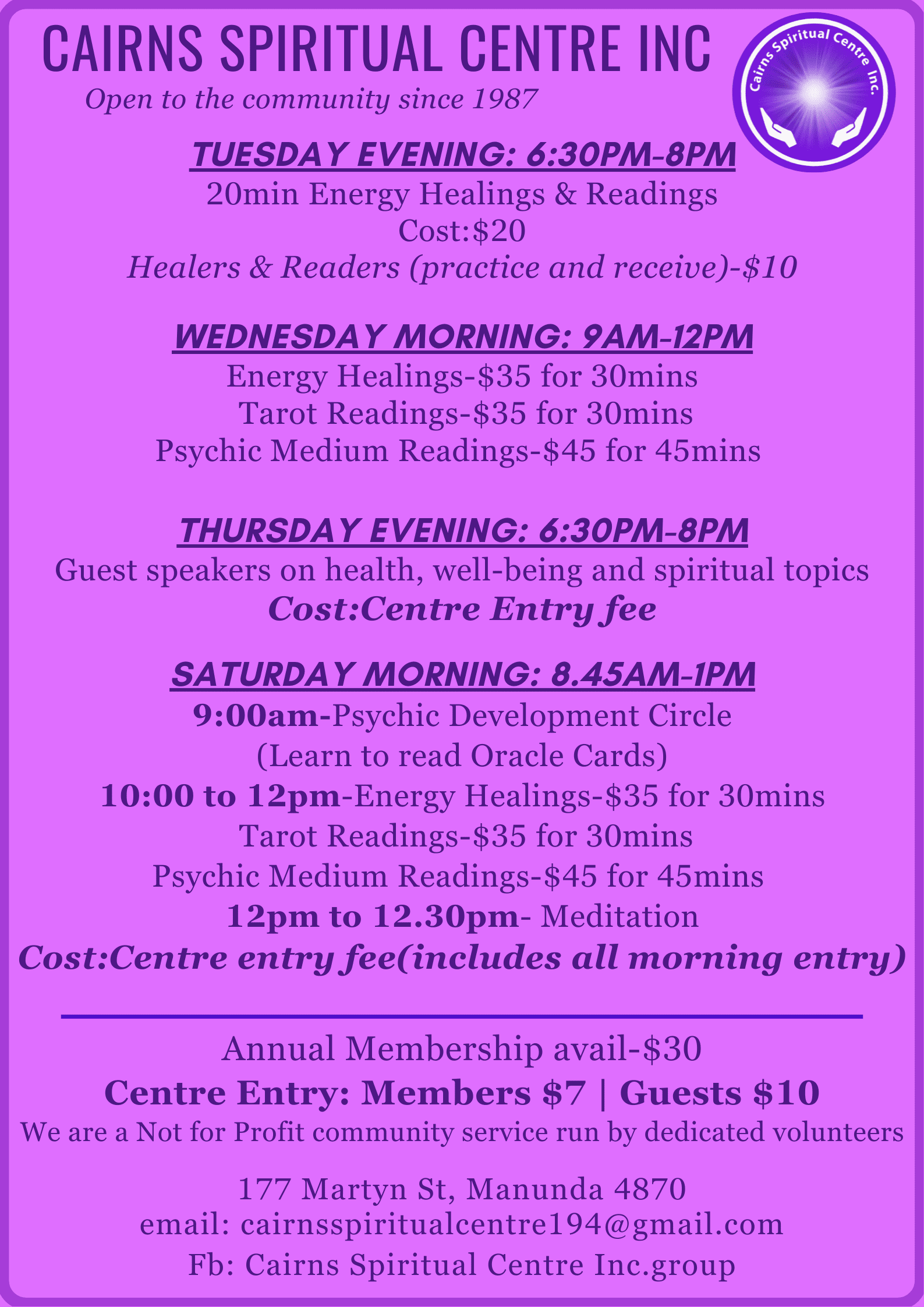 Cairns Spiritual Centre is a community of like-minded people supporting the spiritual evolution of consciousness and promoting self-healing and knowledge for all individuals.